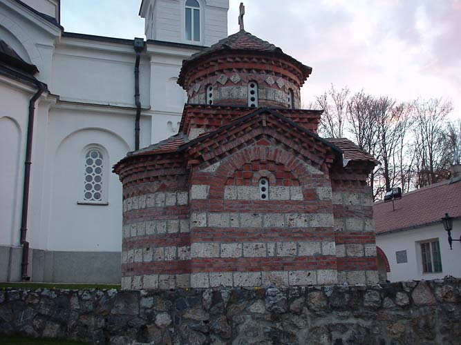 Arhitektonska struktura Srednjovekovni stil sa centralnom crkvom i konacima