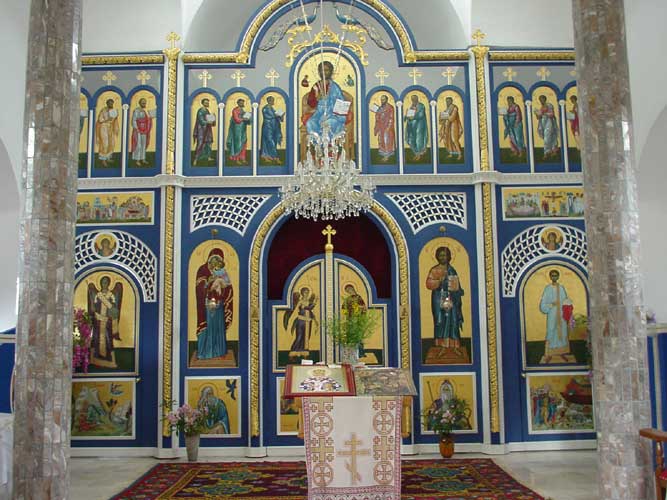 Unutrašnjost crkve nije ukrašena freskama, ali čuva istorijske uspomene. Na primer, putevni kamen iz 1854. godine je dar ruskih vojnika.