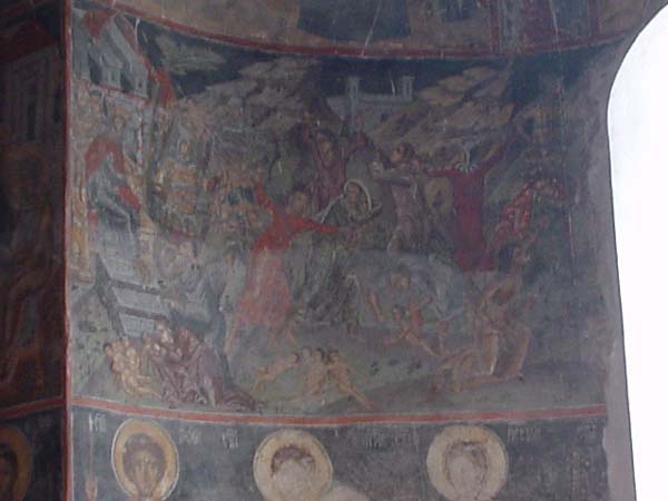 Najznačajnija je freska Pokolj Vitlejemske dece (nalazi se iznad desne pevnice) koja je u potpunosti preuzeta sa freske u katolikonu crkve manastira Lavra na Svetoj gori.