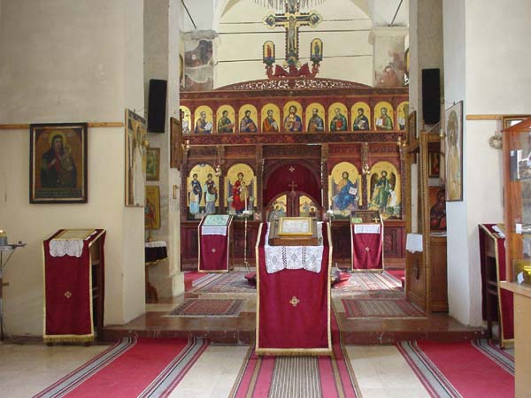 - Ikonostas – nekada bogato ukrašen ikonama Vasilija Ostojića.