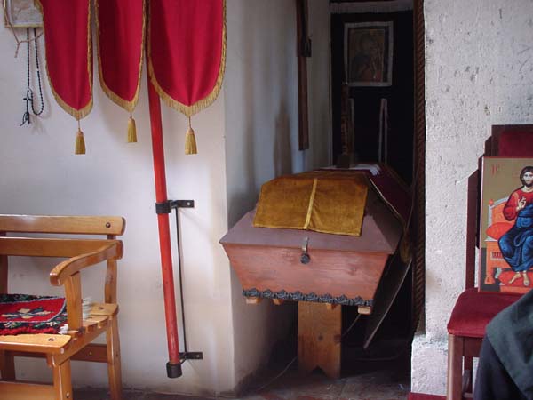 - Drveni kivot ukrašen sedefom sa moštima Svetog Prokopija.