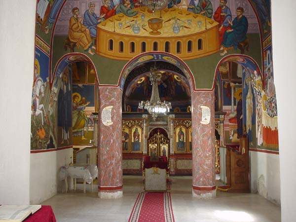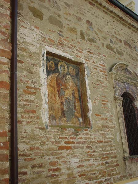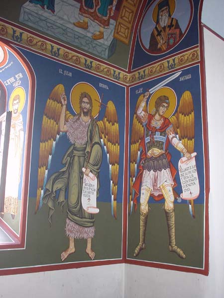Od tih fresaka sačuvana je u niši na severnom zidu freska Bogorodice sa malim Hristom. Na južnom zidu su dva svetitelja ratnika od kojih jedan nepoznat a drugi je Sv. Dimitrije kako sedi na prestolu a dva anđela mu drže krunu.