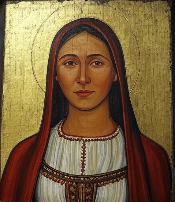 mirnog, ali odlučnog izraza lica, što simbolizuje istrajnost u veri.